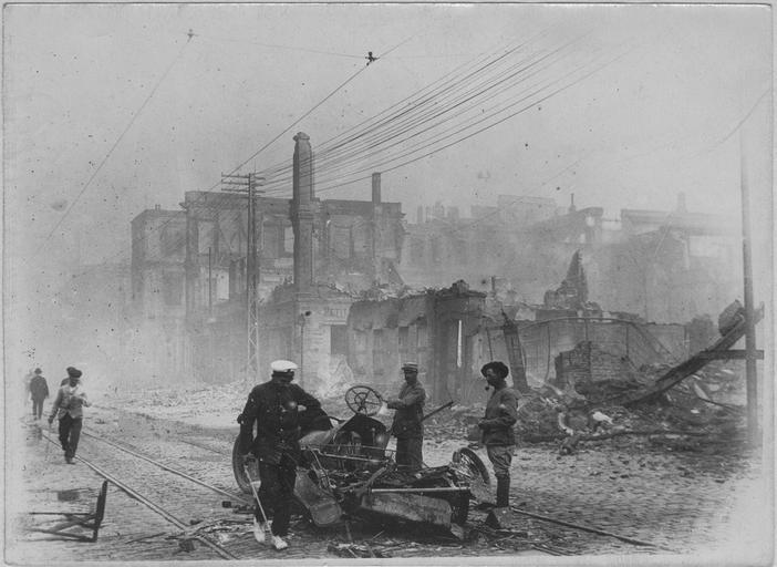 Ministère de la Culture (France) – Médiathèque de l'Architecture et du Patrimoine – Diffusion RMN, “Incendie de Salonique (18-20 août 1917). Un coin des quais. Au premier plan, une automobile de secours,” Mapping Cultural Space Across Eurasia, accessed March 6, 2026, https://eurasia.omeka.fas.harvard.edu/items/show/1072.